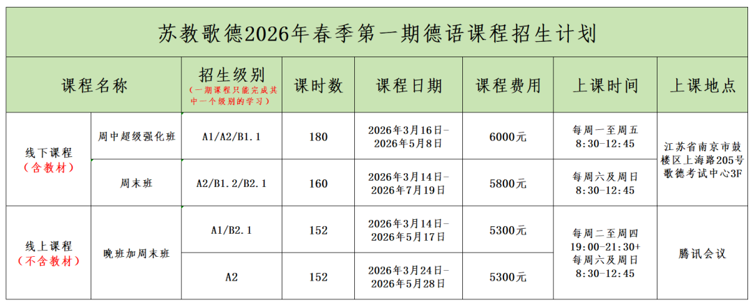 八个班已确定开班 !—— 欢迎继续报名苏教歌德2026年春季第一期德语课程~