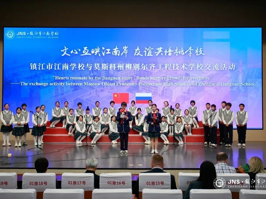 在镇江市江南学校,俄罗斯莫斯科州柳别尔齐市工程技术学校代表团一行通过参观学校图书艺术楼等场馆、观摩学生社团文化展演和座谈交流等,深入了解了学校“和润教育”理念下的体艺工作特色与德育活动体系,感受到传统与现代交融的育人活力。