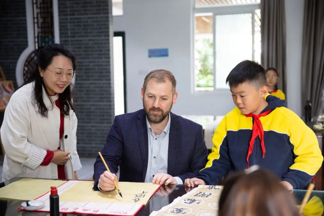 英国探索教育集团执行总校长尼古拉·埃弗雷特、凯尔维登哈奇学校校长维多利亚·汤森走进南京汉开书院,在书法教室观摩学生书法课,亲自执笔体验中国书法。尼古拉·埃弗雷特高度赞赏书院将中国传统文化与现代化教育深度融合的模式,“我们在汉开看到了教育的另一种卓越形态——它根植于深厚的文化,却又面向广阔的未来。”