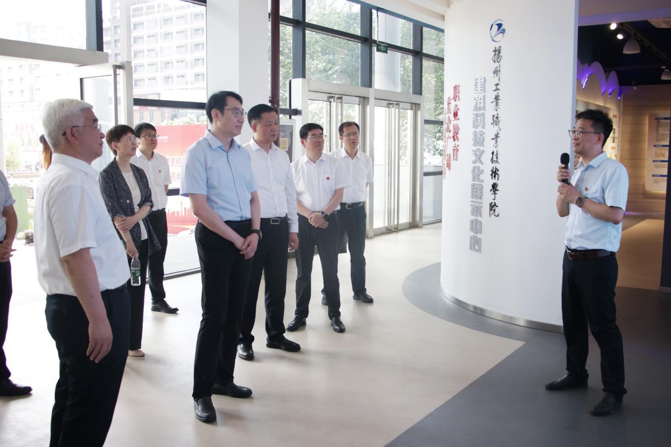 在扬州市职业大学,赵岩走进位于校内的扬州智能制造先进技术示范中心、艺术学院非遗实训中心、省扬州环境监测中心和智能光电与智造现代产业学院,听取办学发展历程和近年来推进学校高质量发展的总体情况,详细了解学校推进校地合作、校企合作、学生实习实训和非物质文化遗产保护等方面的特色做法。他表示,学校办学基础良好、类型特色鲜明,要持续将高质量发展作为生命线,聚焦区域经济社会发展和产业转型升级需求,构建职业教育与产业发展、区域发展良性互动、优势互补的发展格局,源源不断培养更多高素质技术技能人才、能工巧匠、大国工匠。