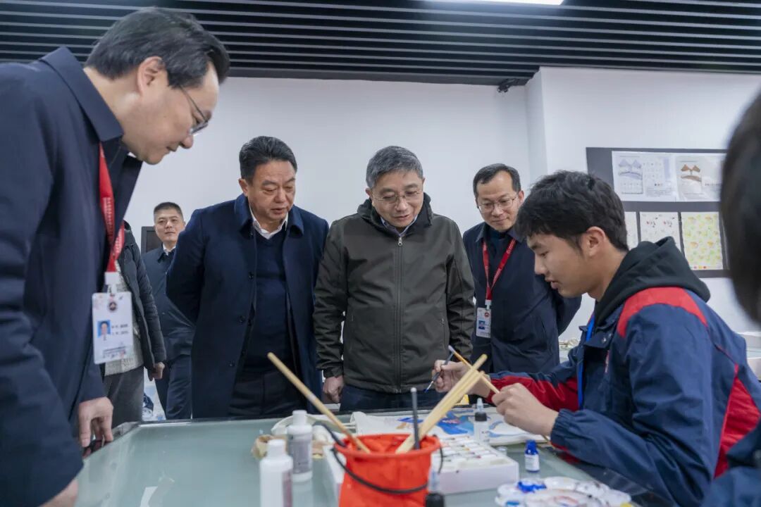 在江苏省通州中等专业学校,江涌和留校新疆学生亲切交谈,详细询问同学们假期学习安排、生活保障及家乡情况,并送上新春祝福。江涌实地调研“新家坊”融合实训中心,听取相关专业建设情况,并了解学校在彩染、布贴画等非遗传承方面的创新实践。他对学校在服务地方产业、校企协同育人、拓展学生技能培养等方面取得成效表示肯定,向留校教职工表示感谢并恭贺新春。