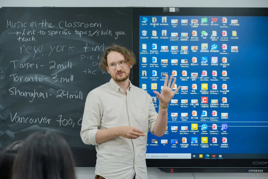 引智培训课程由经验丰富的外籍教师执教,针对小学、初中、高中不同学段特点,围绕课堂管理、环节设计、教学策略等核心议题,开展丰富多样的专题教学。外教不仅展示了“以学生为中心”的教学模式,还通过案例分析和头脑风暴等形式,与参训教师深度交流、互相学习,全方位提升参训教师的专业素养与教学能力。