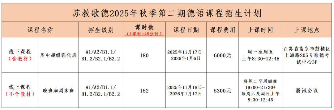 苏教歌德2025年秋季第二期德语课程开始报名啦!