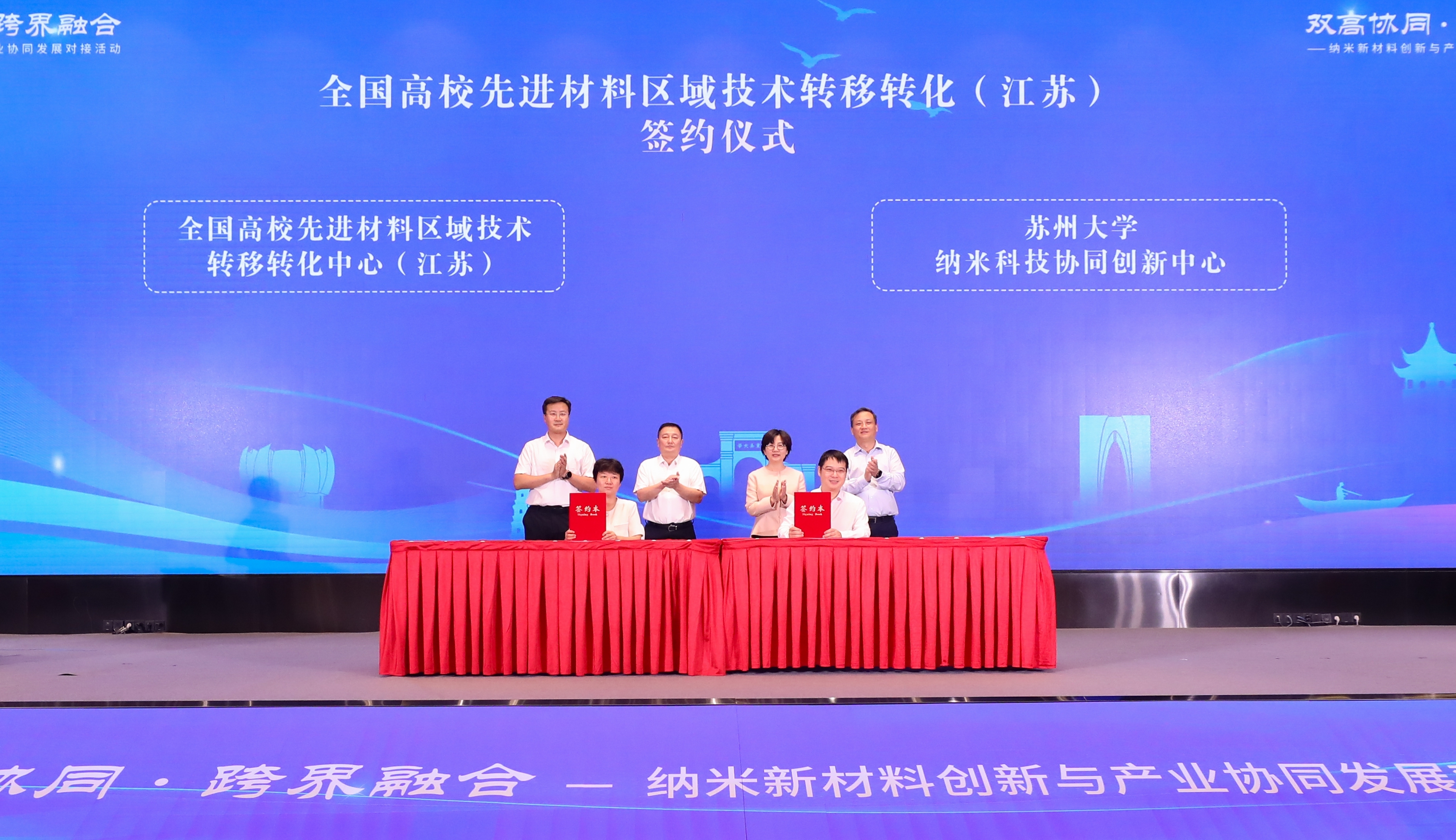 会上,苏州纳米科技协同创新中心与全国高校先进材料区域技术转移转化中心(江苏)完成共建签约,中国药科大学等6所高校协同创新中心与全国高校生物医药区域技术转移转化中心(江苏苏州)签署共建协议。现场集中签约10个合作项目,并为4家纳米科技协同创新中心的协同企业授牌。活动期间,企业专家学者作专题报告,40所高校与56家企业开展对接洽谈,现场发布高校科技成果145项、企业技术需求281项,达成初步合作意向20项。