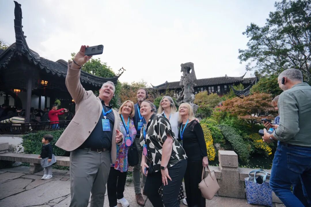 11月5日,来自不同国家的校长们走进苏州,在江苏省苏州中学校与文庙感受“府学千年”的历史回响,体会历史文脉与当代教育的贯通;从御窑金砖博馆的匠心技艺到苏州市相城第一实验小学将非遗融入现代课程,聆听非遗传承与教育创新的对话;从德威外籍人员子女学校的国际化课程,到园区规划展示馆产教融合的城市实践,再到古典园林沧浪亭的治学意境,体验国际视野与本土智慧的融合。芬兰库奥雷维西学校基础教育校长米娜·克里斯蒂娜·金努宁感叹道,“这是我第一次来中国,织丝、剪纸、木刻年画等中国传统技艺令人惊艳,我还有幸参与了一节AI课程,这体现了中国教育的科技前沿。我诚挚邀请苏州友好学校的师生访问芬兰耶姆萨市。”