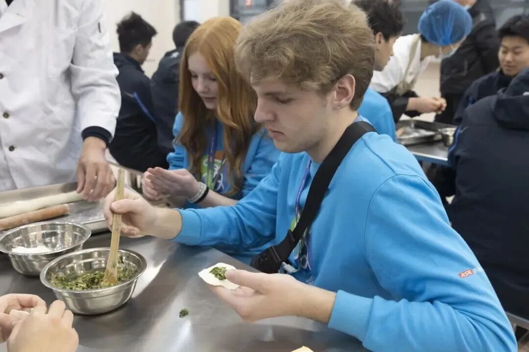 在盐城参访期间,美国师生走进盐城工学院和江苏省盐城中学,在多元互动中开启“跨越东西方的文化对话”。文化课堂上,美国师生体验传统武术太极拳、漆画扇制作、非遗剪纸、包水饺等特色活动,品味中华传统文化的雅致与意蕴;产教融合成果展中,美国师生观摩赛车展示,与车队队员就赛车设计、制造工艺和训练比赛情况展开互动交流。此外,团组师生还欣赏了美国民歌大合唱,在歌声中传递纯真友谊。