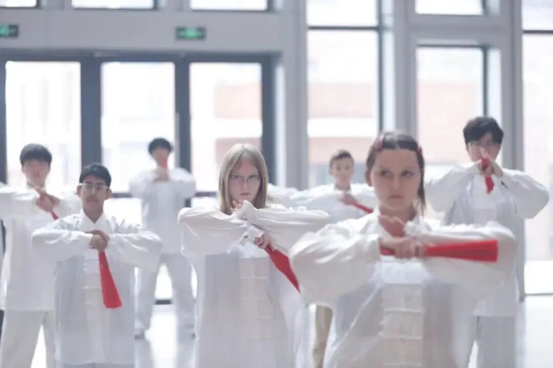 在南京参访期间,英国师生走进南京安生学校,上演了一场“文化破壁”的青春奇遇记。在漆扇制作工作坊,两国学生共同探索“水影魔法”,扇面提拉间将随机的色彩纹理定格成独一无二的艺术品。在太极拳体验课上,英国学生跟随老师学习站桩、云手等基本招式,从生涩模仿到逐渐领会,在一招一式中亲身感受中国武术“以柔克刚、和谐平衡”的东方智慧。行程最后,双方学生共进午餐,在轻松的氛围中继续交流,于美食与欢笑间深化文化共鸣。